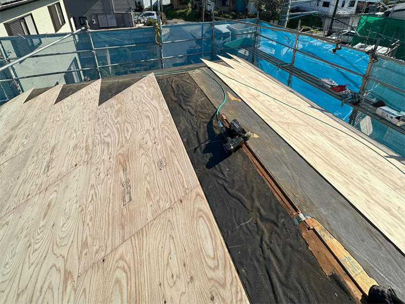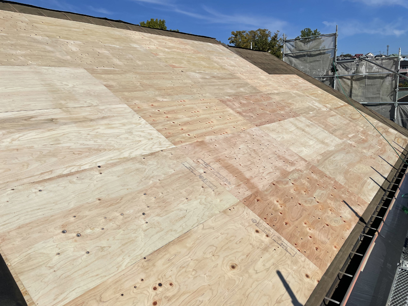 この下には、コロニアルで葺かれた古い屋根がそのままあります。古い材料の撤去費用が削減できますが、カバー工法ができる状態か見極める必要があります。