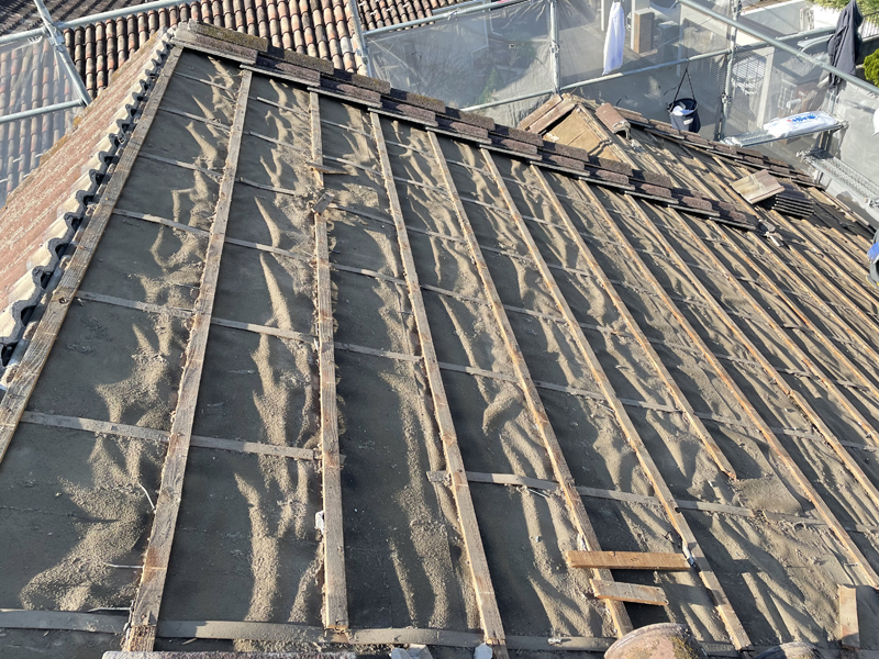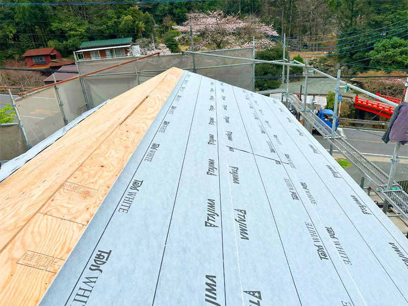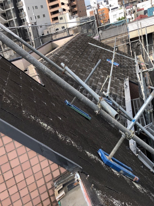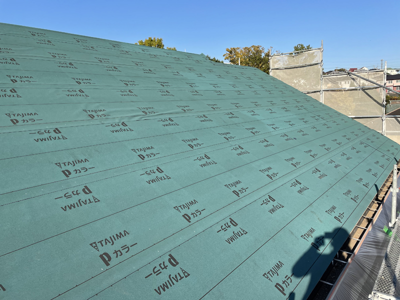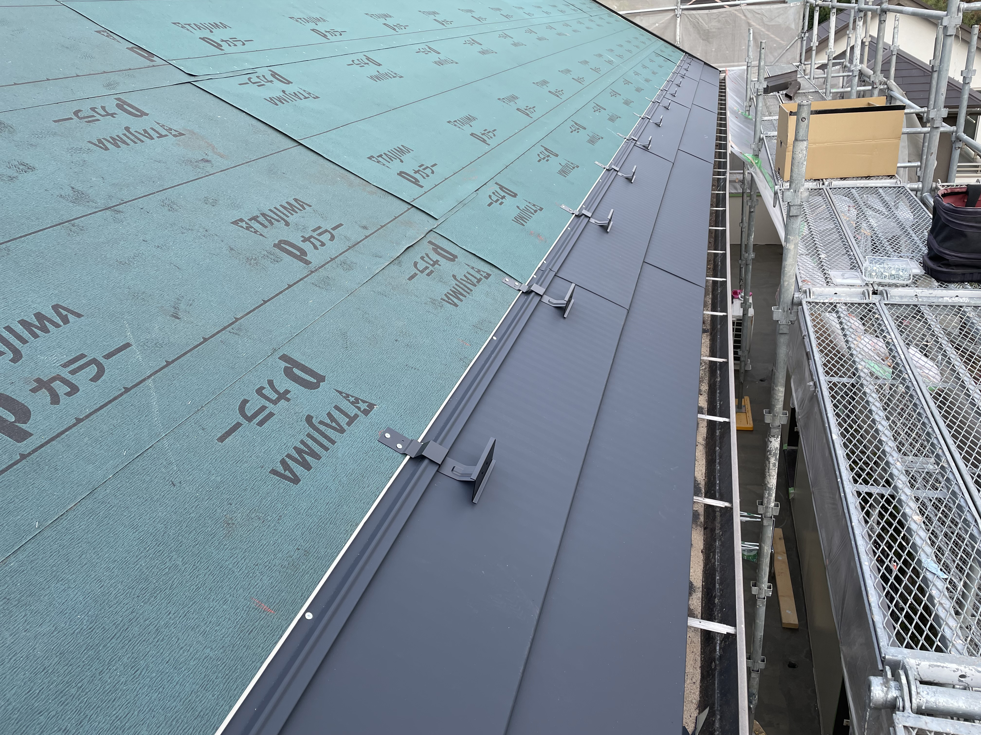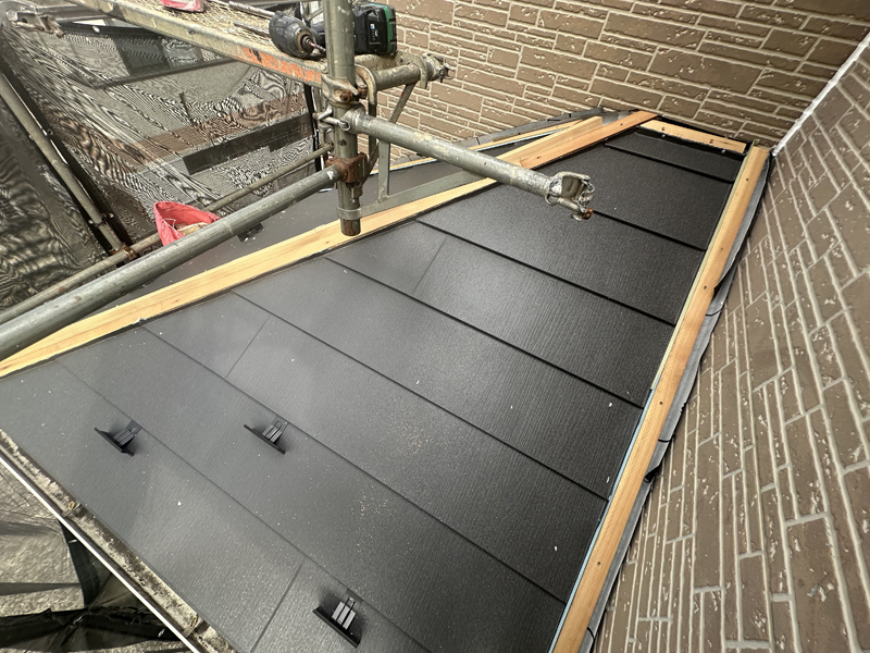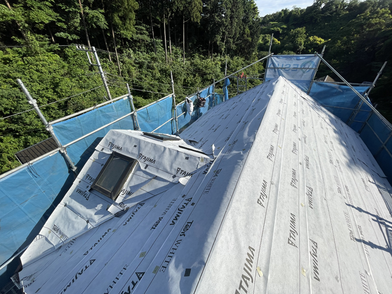 この下には、同じでブラックスワンで葺かれた古い屋根がそのままあります。古い材料の撤去費用が削減できますが、カバー工法ができる状態か見極める必要があります。
