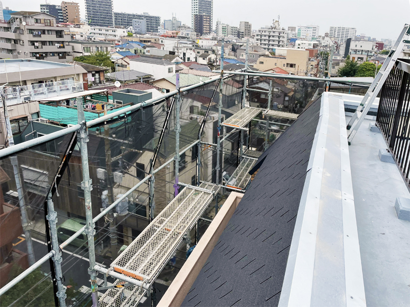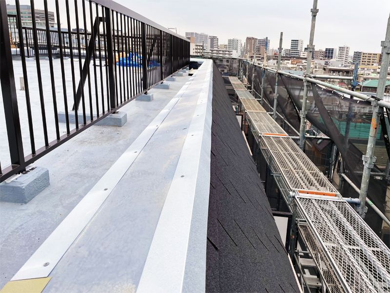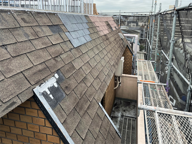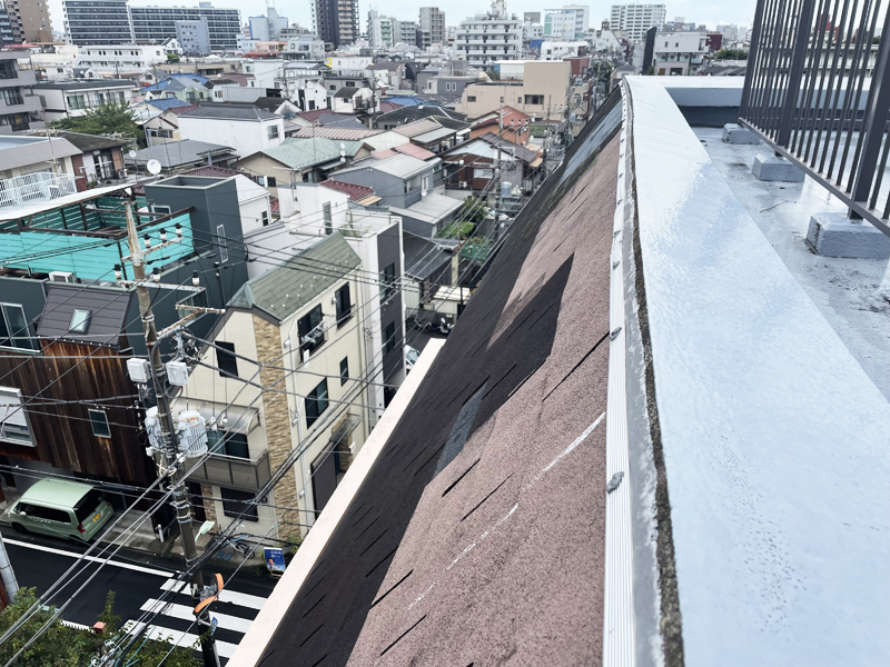10東京都太田区 Lマンション様~シングル葺き斜壁をカバー工法で葺き替え
