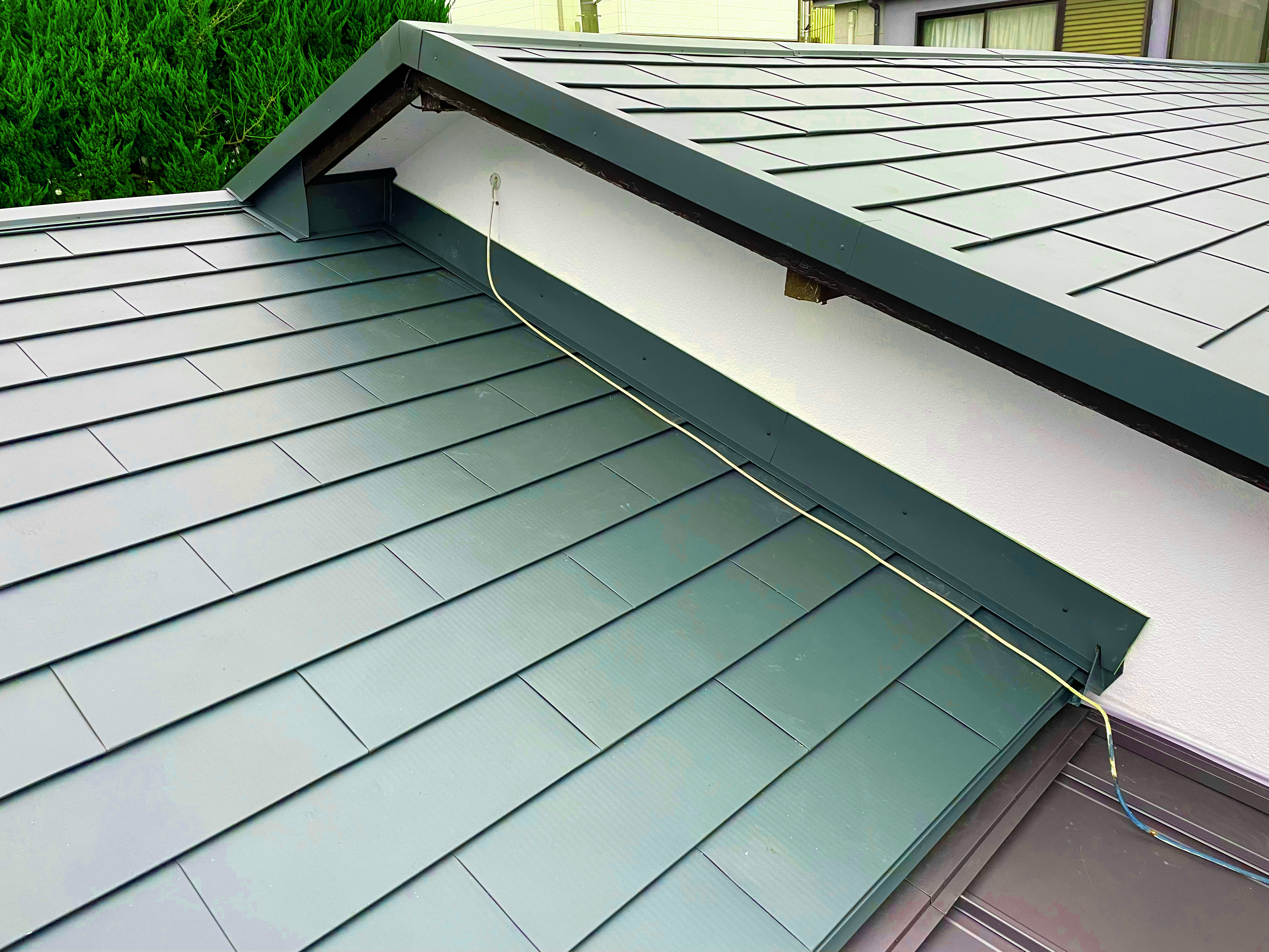 屋根には谷がありますので、漏水しないように注意して仕上げました。