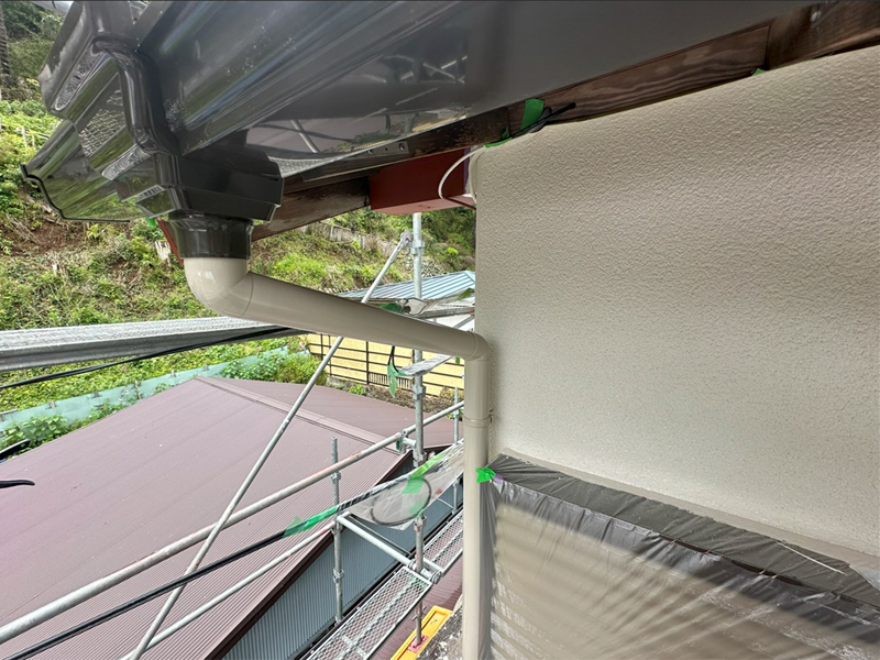 同時に、雨樋の交換工事と外壁の塗装工事も行いました。