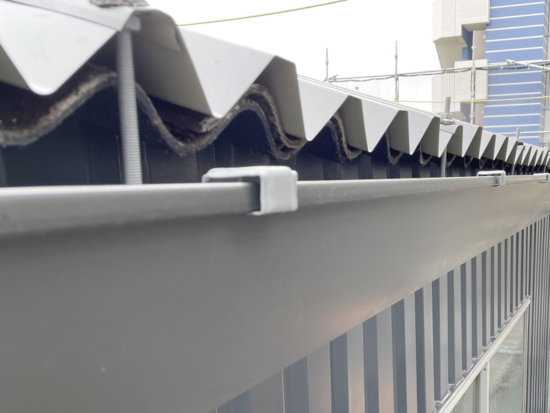 ケラバを撤去し金属波板を使用したカバー工法なので、比較的短時間の工期で済みます。