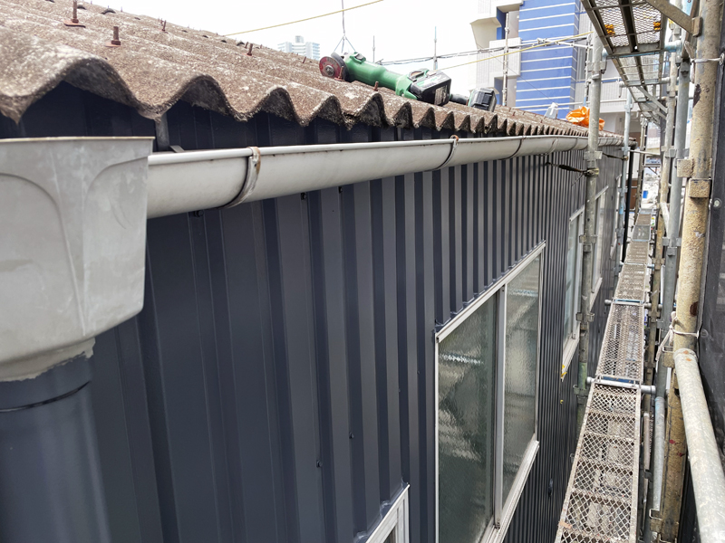 8横浜市鶴見区 K倉庫様~スレート屋根のカバー工法による工事